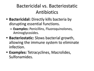 Bacteriostatic and Bactericidal antibiotics-MICROBIOLOGY QUICK LEARN | PPTX