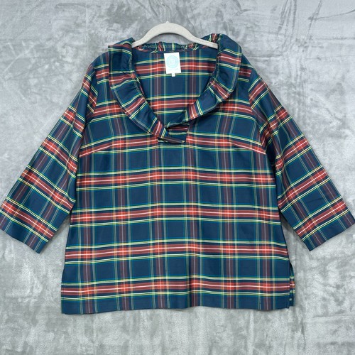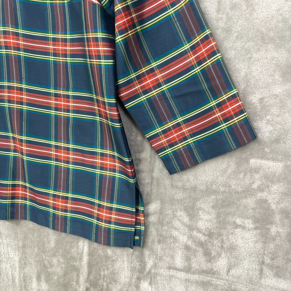 Tuckernuck Devon Baer 100% Silk Stewart Shirt Women XL Plaid Blue ...