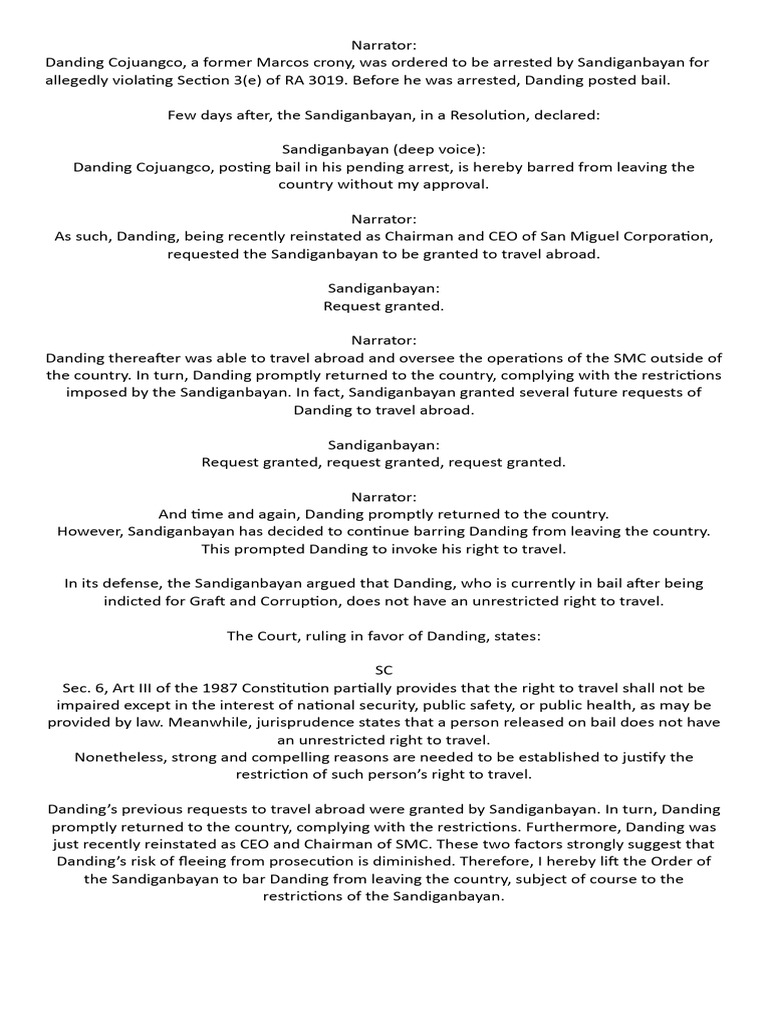 Cojuangco, Jr. Vs Sandiganbayan Script Echos | PDF | Bail | Freedom Of ...