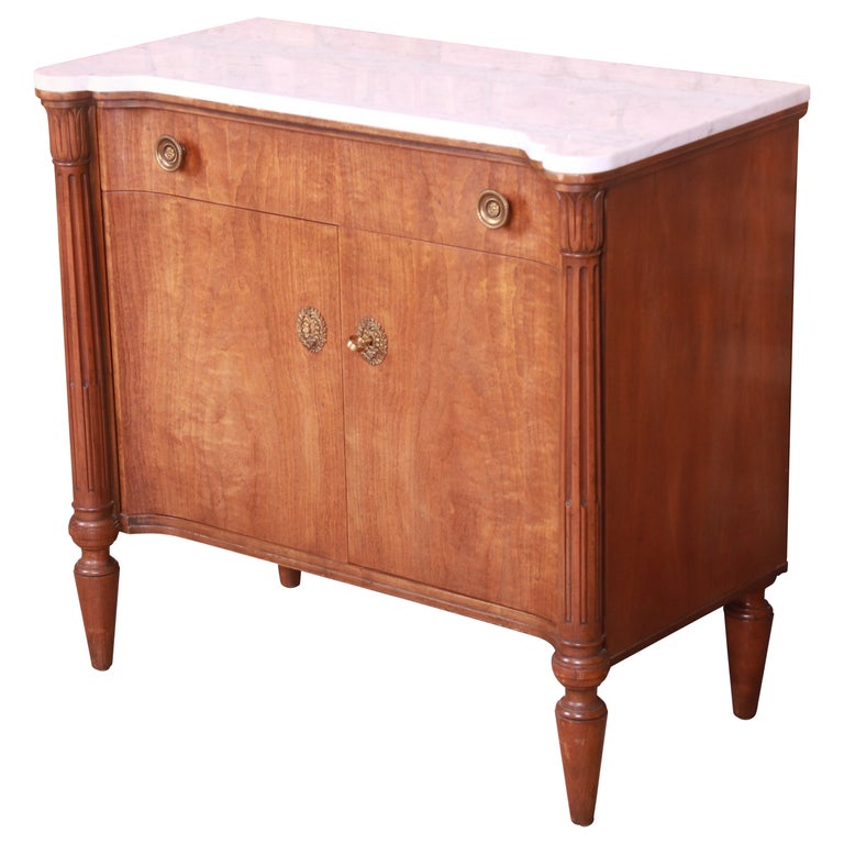 Baker Furniture Neoclassical Walnut Marble Top Commode or Bar Cabinet ...