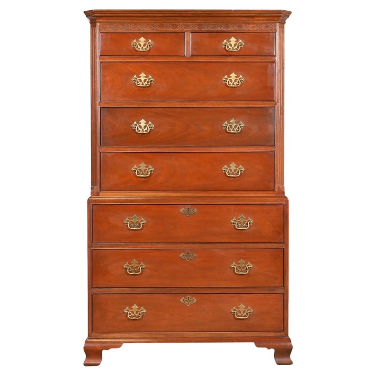 Meubles Baker - Commode haute à huit tiroirs en acajou sculpté de style ...