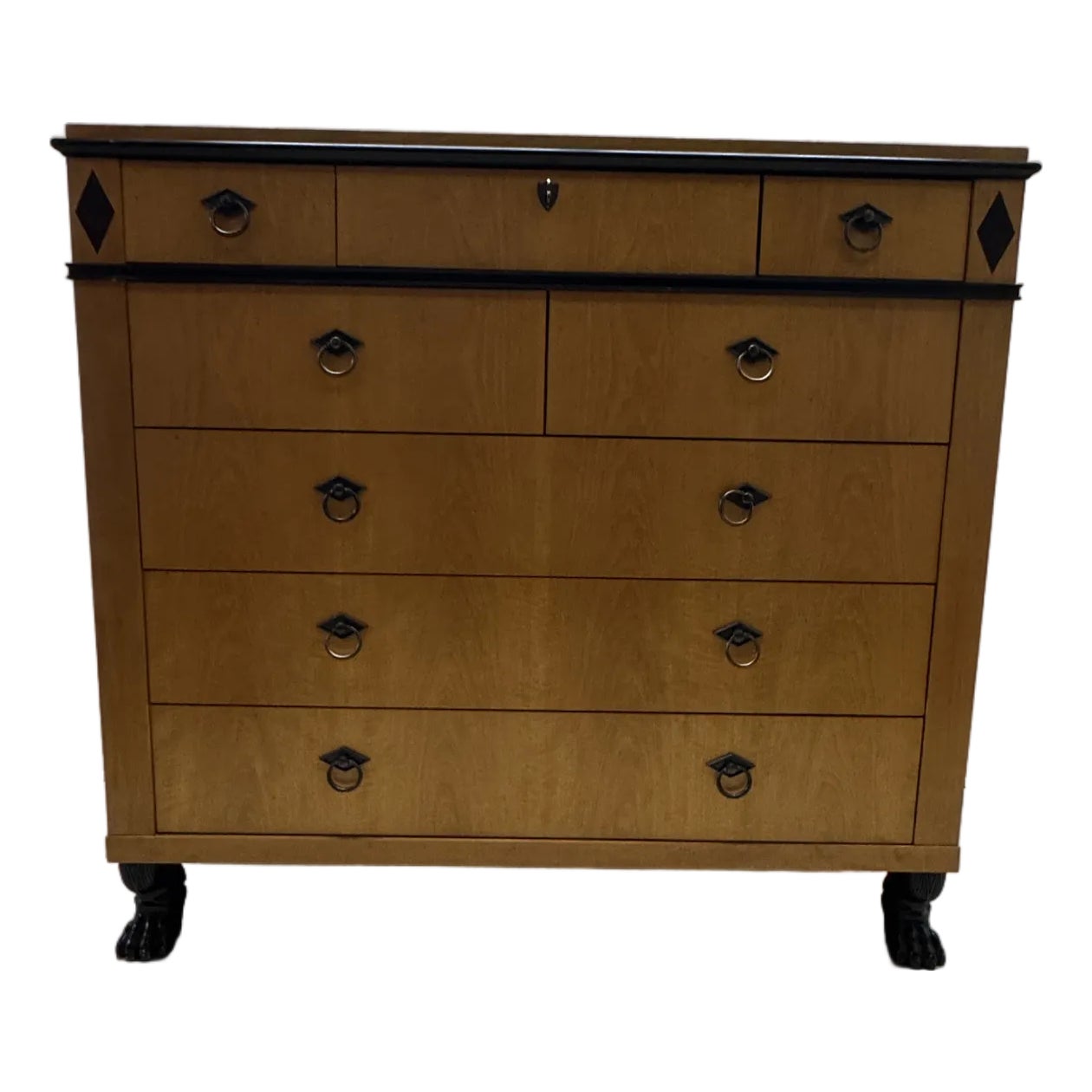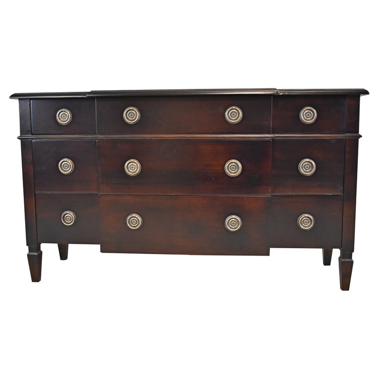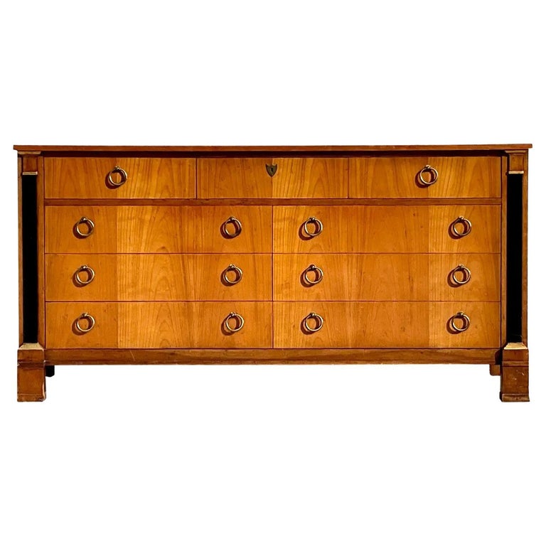 Baker Furniture French Empire Cherry and Burl Wood 9-Drawer Commode For ...