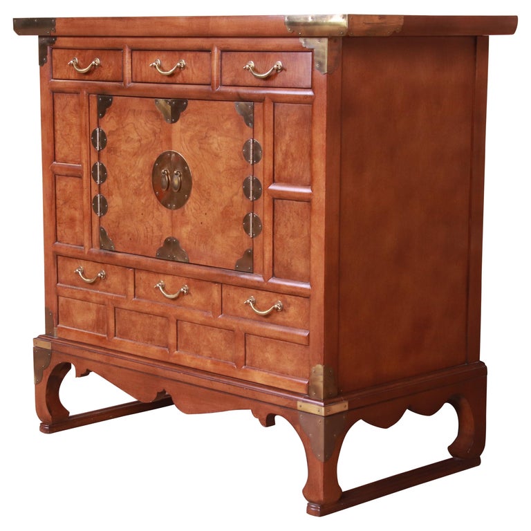 Baker Furniture Chinoiserie Burl Wood Commode or Bar Cabinet, Circa ...
