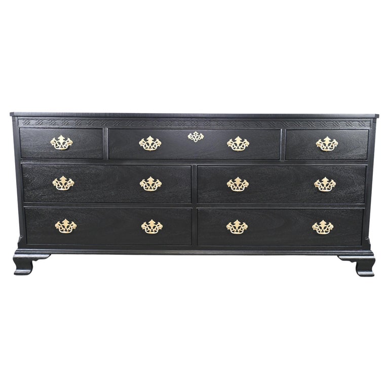 Baker Furniture commode Chippendale en acajou laqué noir En vente sur ...