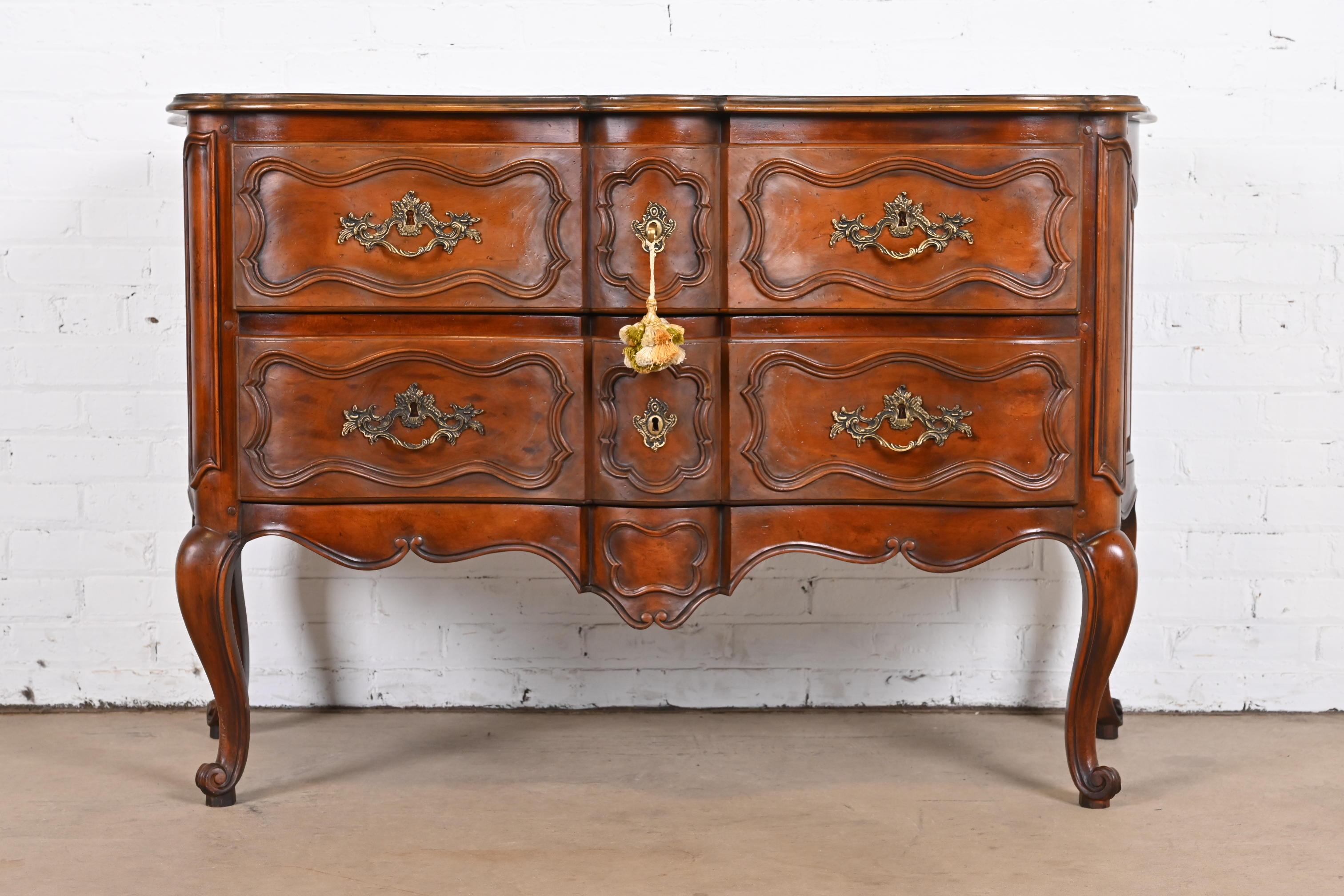 Baker Furniture French Provincial Louis XV Carved Walnut Commode or ...