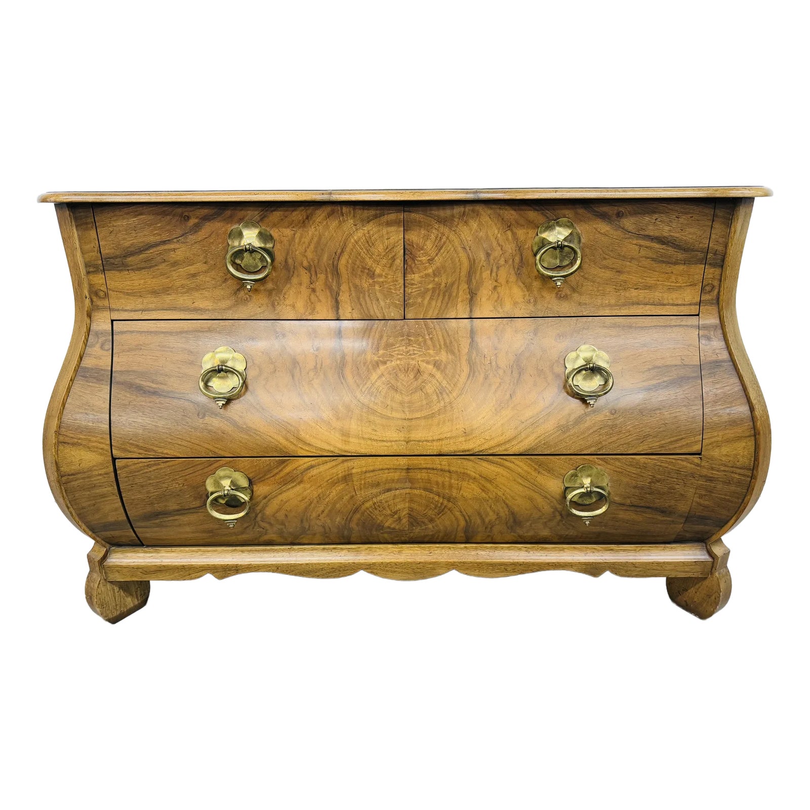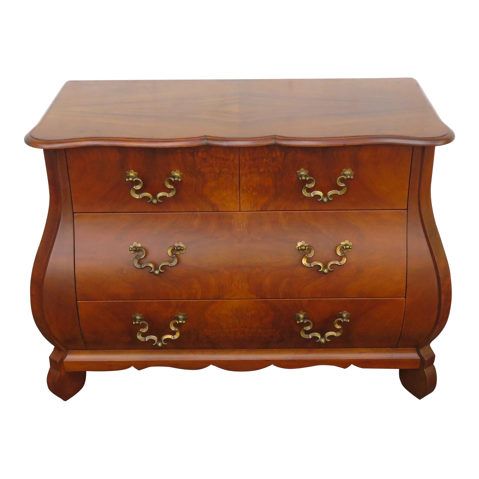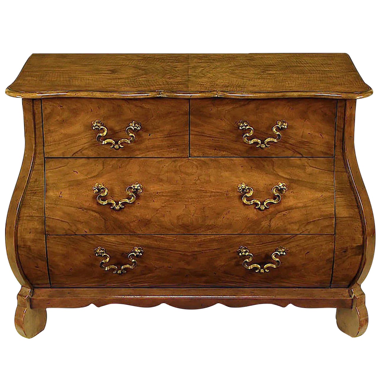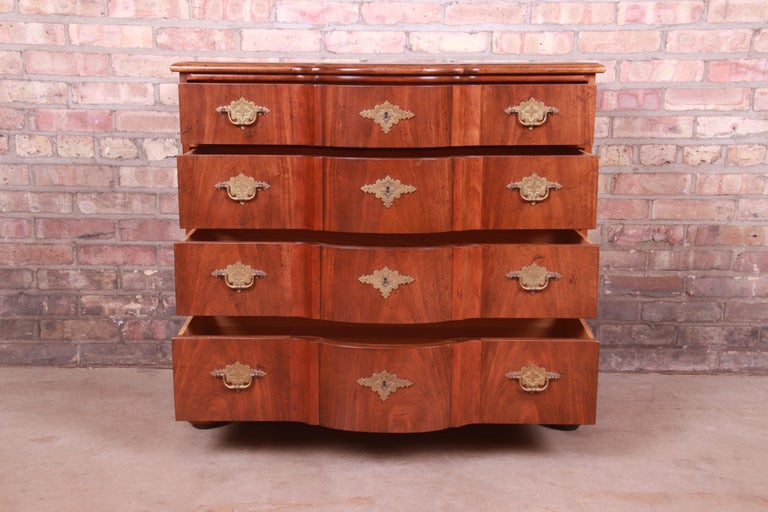 Baker Furniture McMillen Walnut Serpentine Louis XV Bombe Chest Commode ...