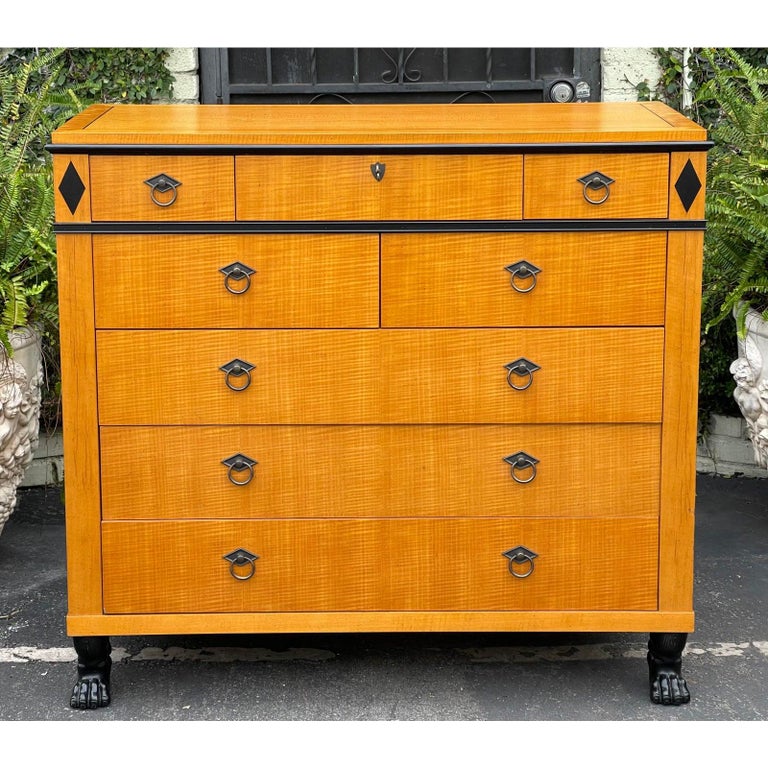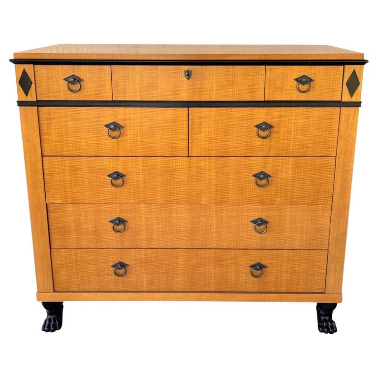 1980s Baker Furniture Biedermeier Style Tiger Maple Commode Chest of ...