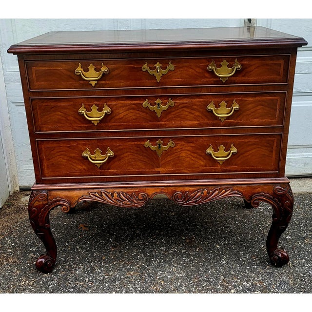 Baker Stately Homes Collection Queen Anne Walnut & Burl Commode | Chairish
