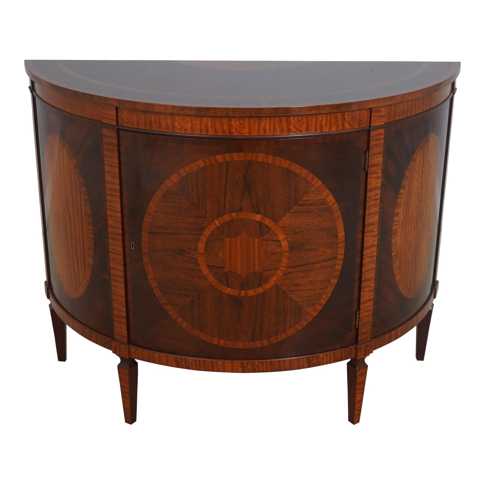 Baker Federal Style Inlaid Mahogany Demilune Commode Cabinet | Chairish
