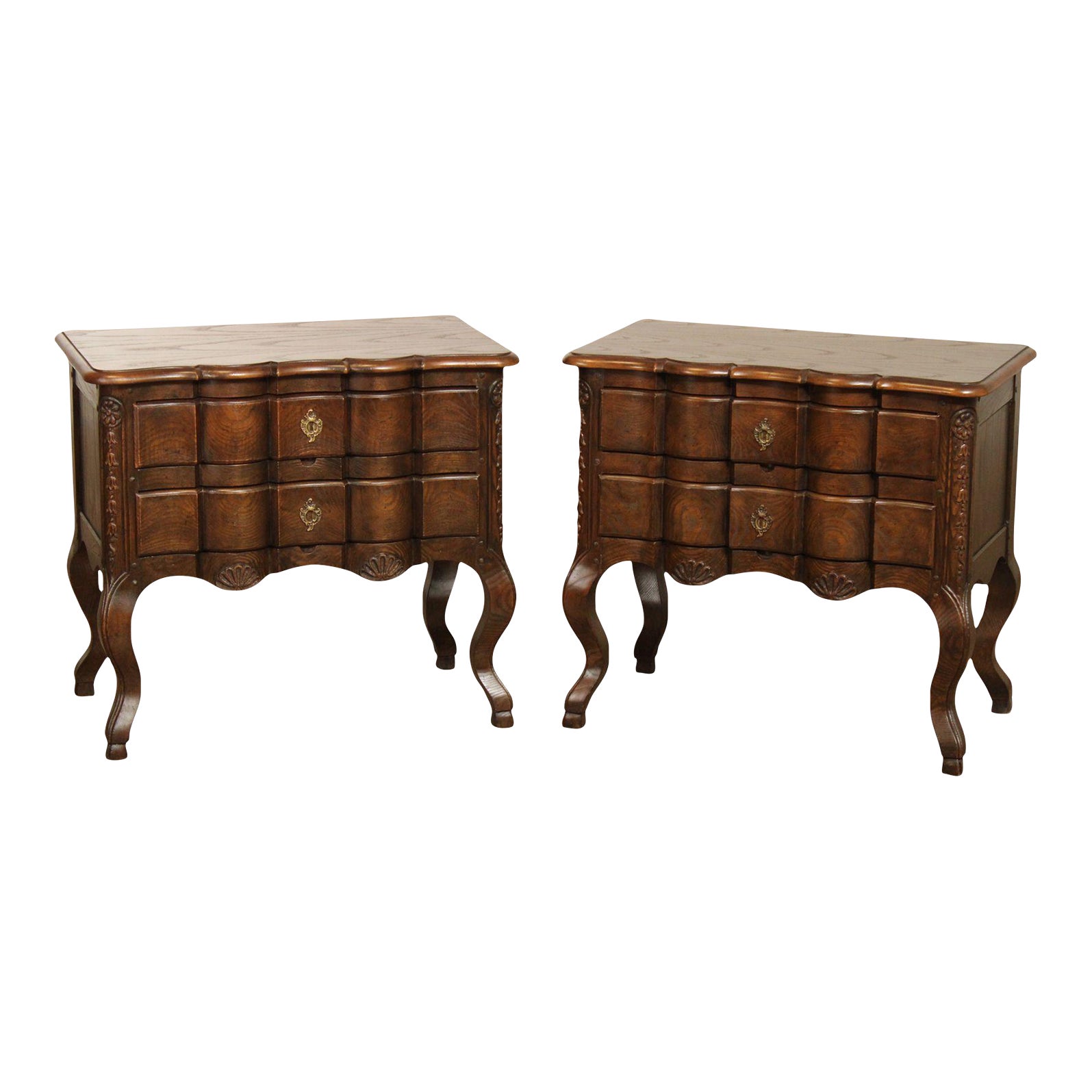 Baker Furniture Baroque Style Pair of Serpentine Commode Nightstands ...