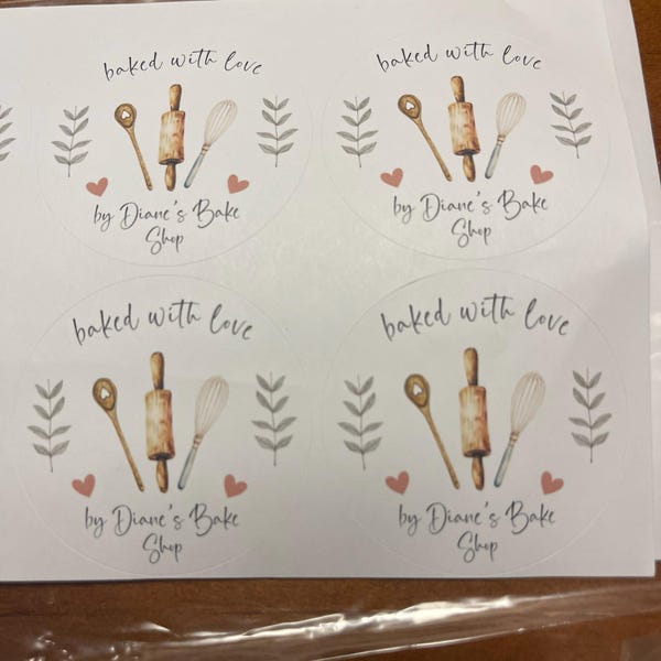 Personalized Baked With Love Stickers, Customized Baked Goods Label ...