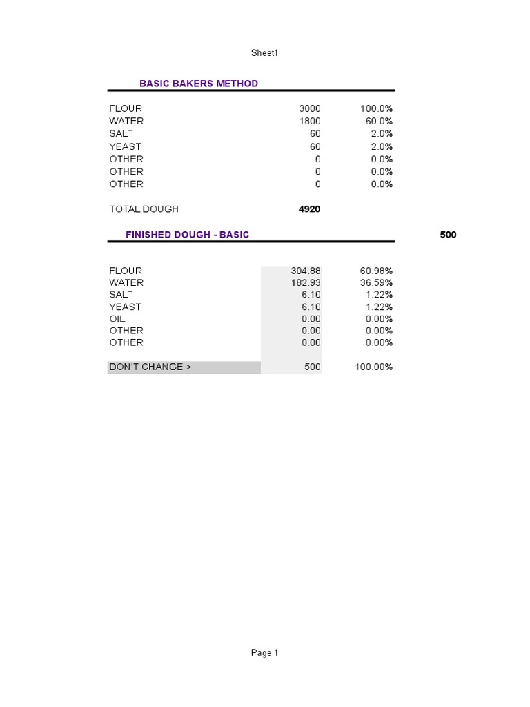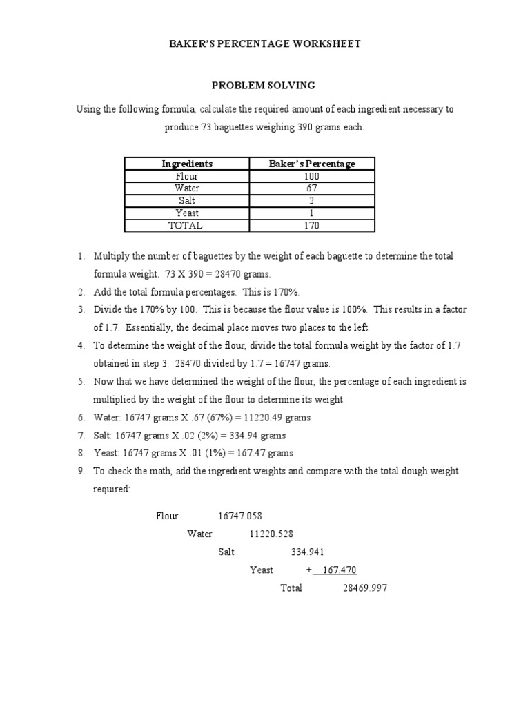 Simplified Math Worksheet Coversions Baker's Percents and Yield ...