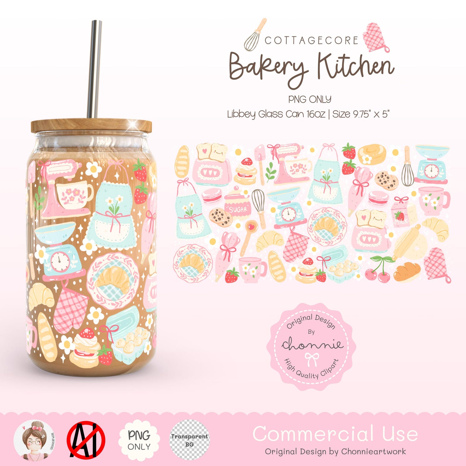 Cottagecore Bakery Glass Can Wrap, Bakery Cup Wrap, Cute Baker Wrap ...
