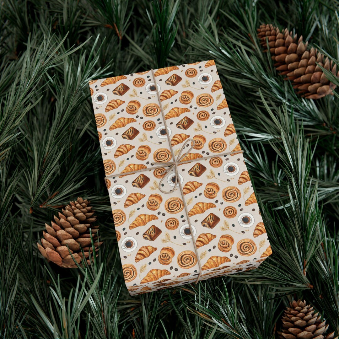 Bakery Pastries Pattern Gift Wrap Paper | Croissants Cinnamon Rolls ...