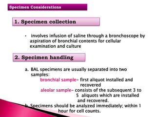 Bronchoalveolar lavage (BAL) cytology . Bronchoalveolar lavage fluid ...
