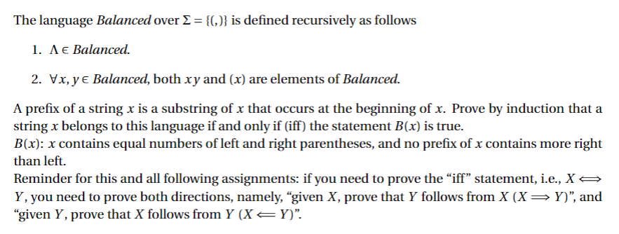 Solved The language Balanced over Σ={(,),\( } is defined | Chegg.com