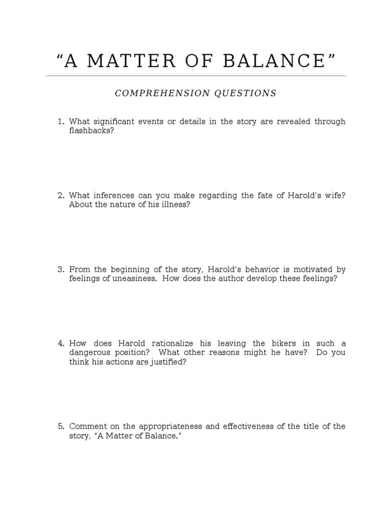"Comprehension Questions for 'A Matter of Balance'" | PDF