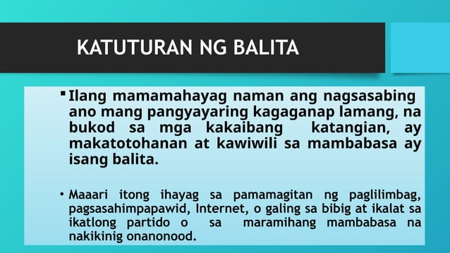 Pagsulat ng Balita - Pagsulat ng Balita Katuturan Ang balita ay ...