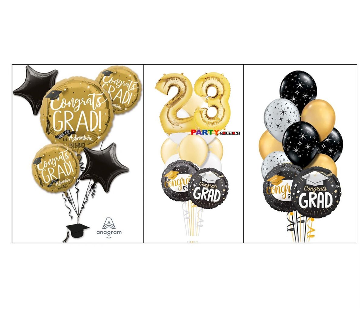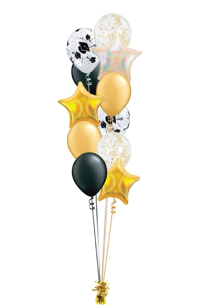 Black Gold & Confetti Graduation Balloon Bouquet – BALLOONERY.COM