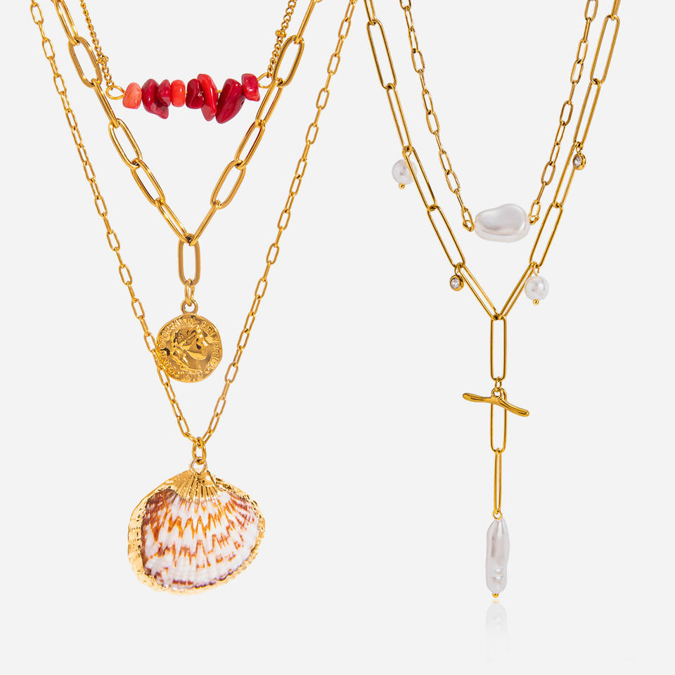 Quiet Elegant Seaside Shell Imitation Pearl 18K Gold-Plated Stainless ...
