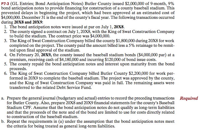 P7-3 (GL Entries: Bond Anticipation Notes) Butler | Chegg.com