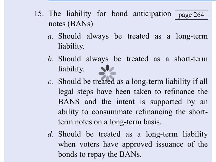 Solved 15. The liability for bond anticipation page 264 | Chegg.com