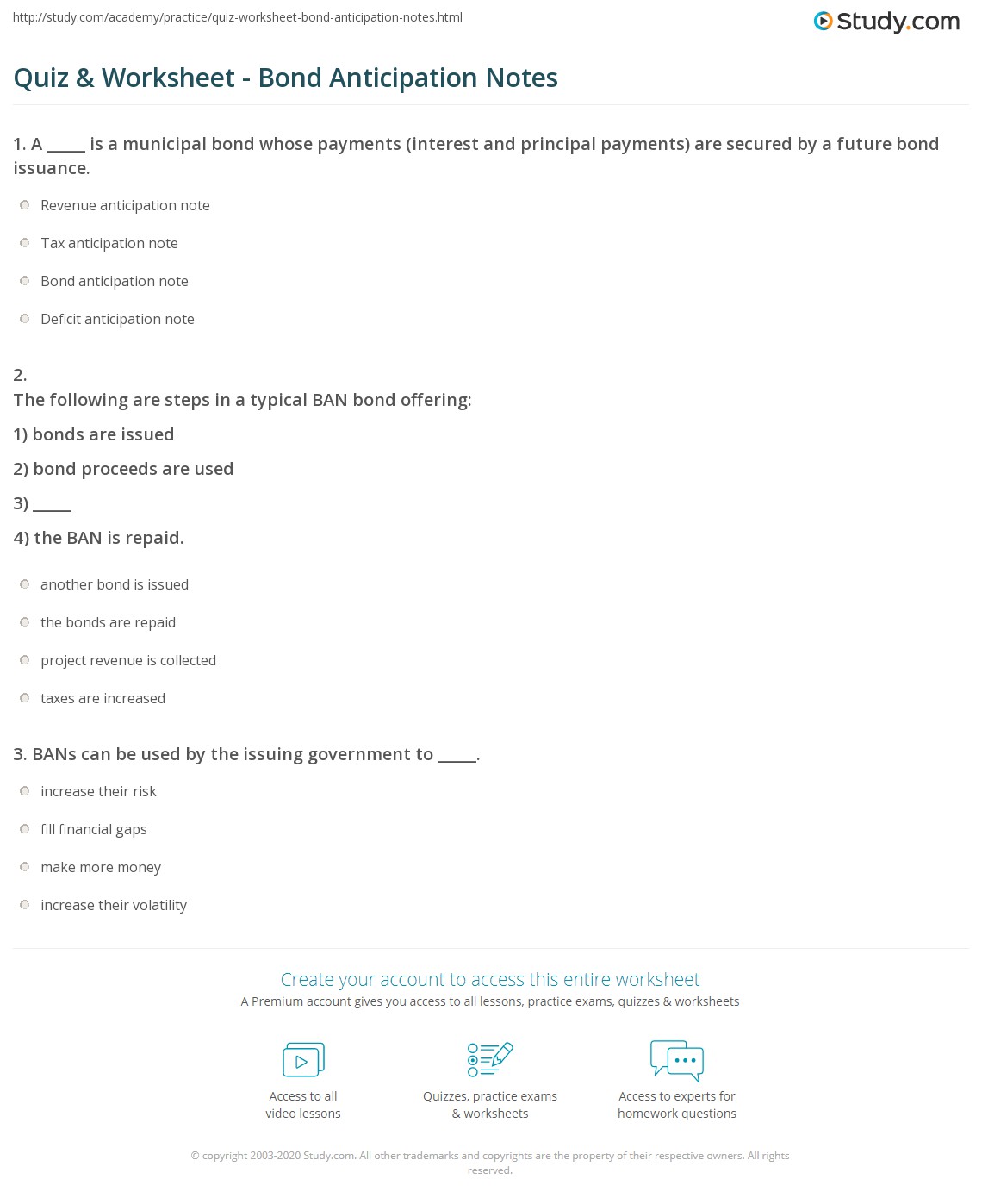 Quiz & Worksheet - Bond Anticipation Notes | Study.com