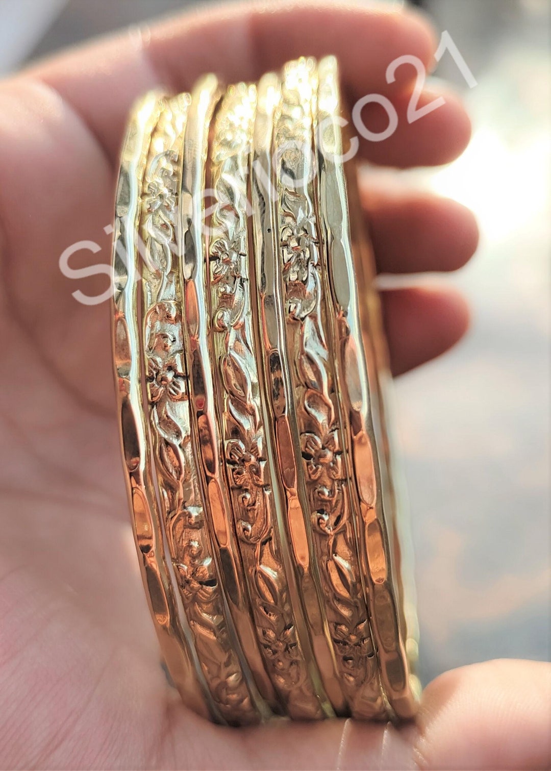 Set of 7 Bangle, Solid Brass Bangles, Stacking Bracelets, Gold Tone ...