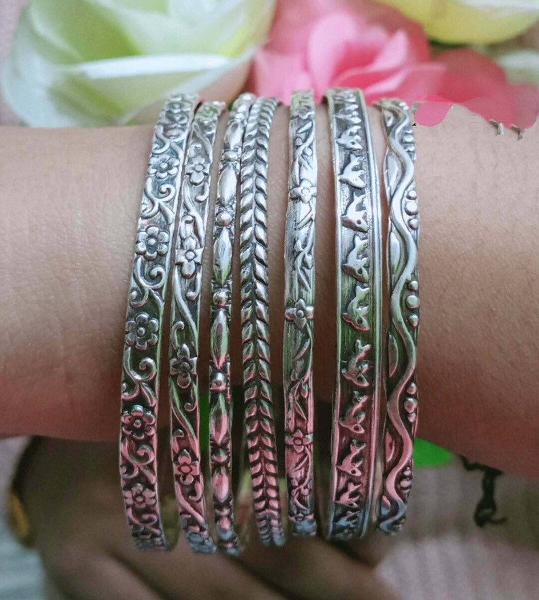 Beautiful Set of 7 Bangles, Stacking Bangles, Gift for Women, Silver ...