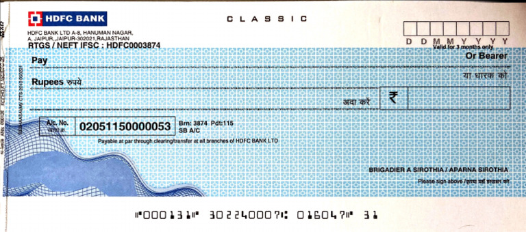 Sample Cheque Hdfc Bank at Travis Castro blog