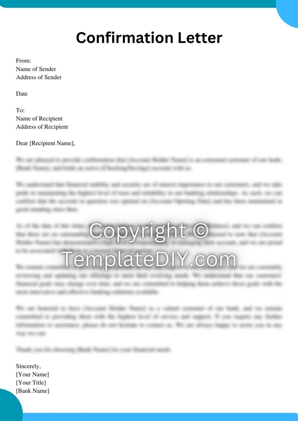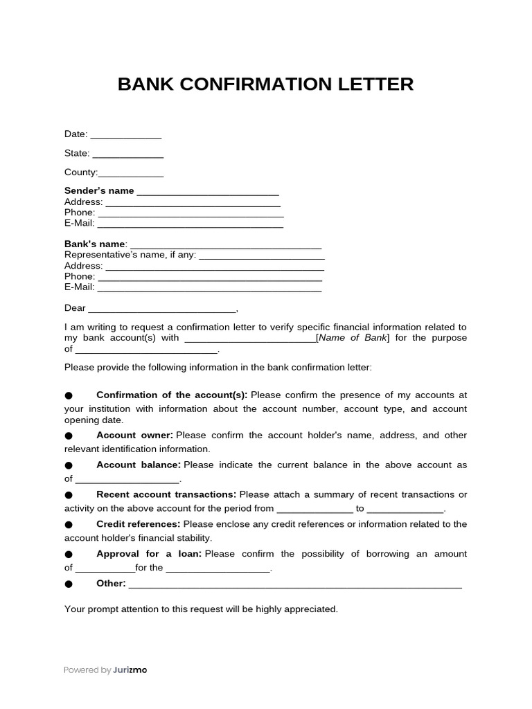 Free Bank Confirmation Letter Sample | PDF, Word | Jurizmo