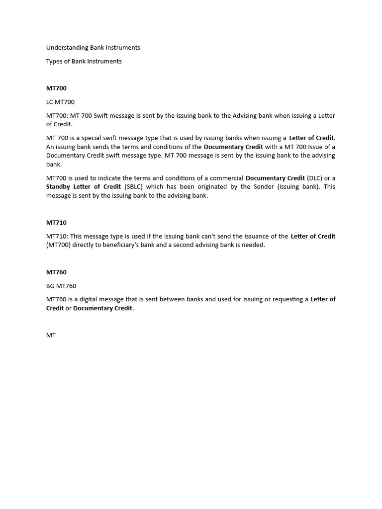 Financial Instruments - SBLC, LTN, MTN, BG, SKR, Monetization: Points ...