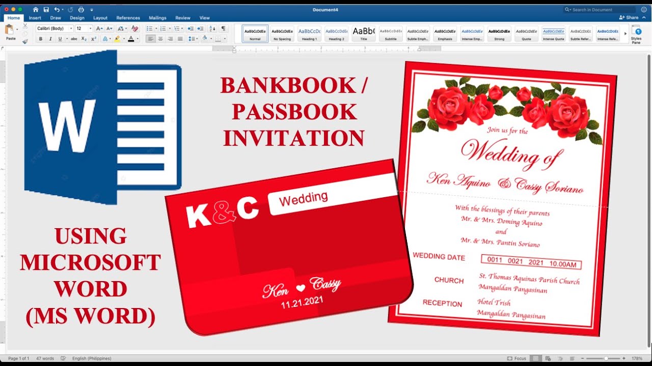 BANKBOOK/PASSBOOK | How to make WEDDING INVITATION in Microsoft Word ...