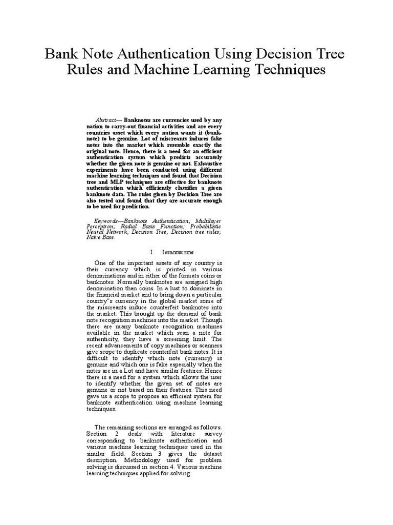 (PDF) Banknote Authentication Using Machine Learning Classification ...