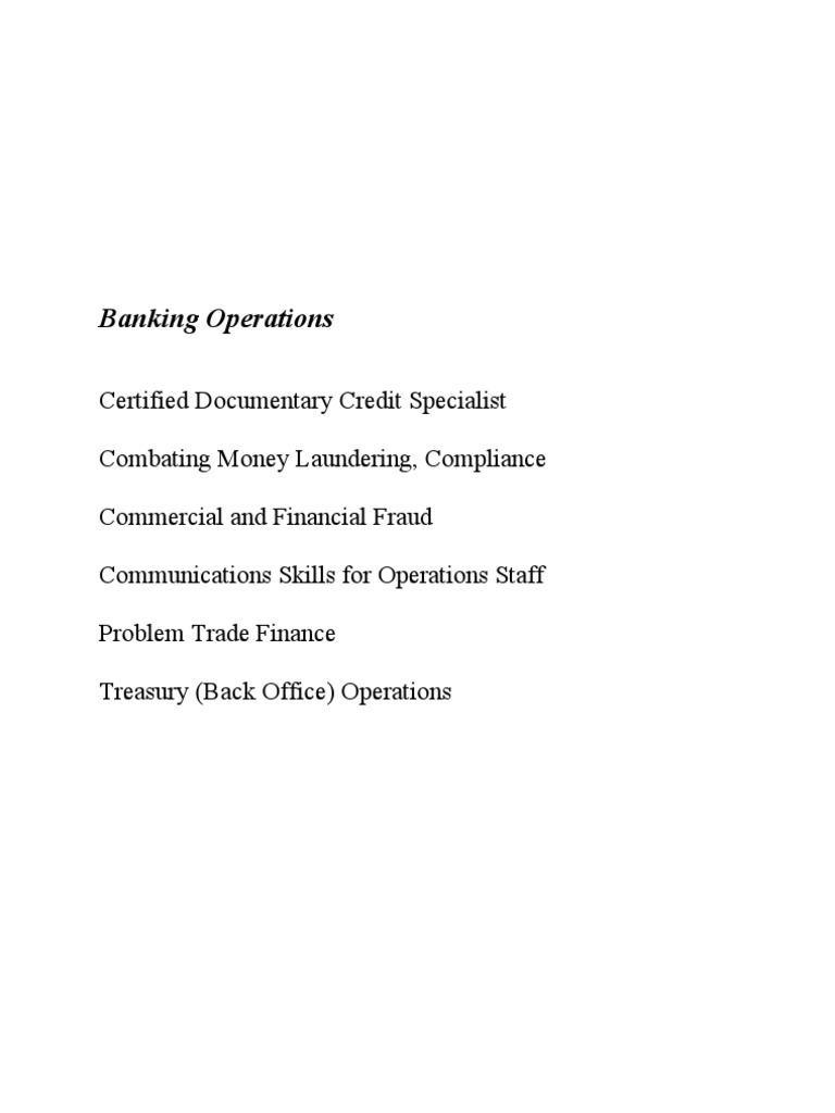 4 Day Banking Operations Training Department Program Schedule Download PDF