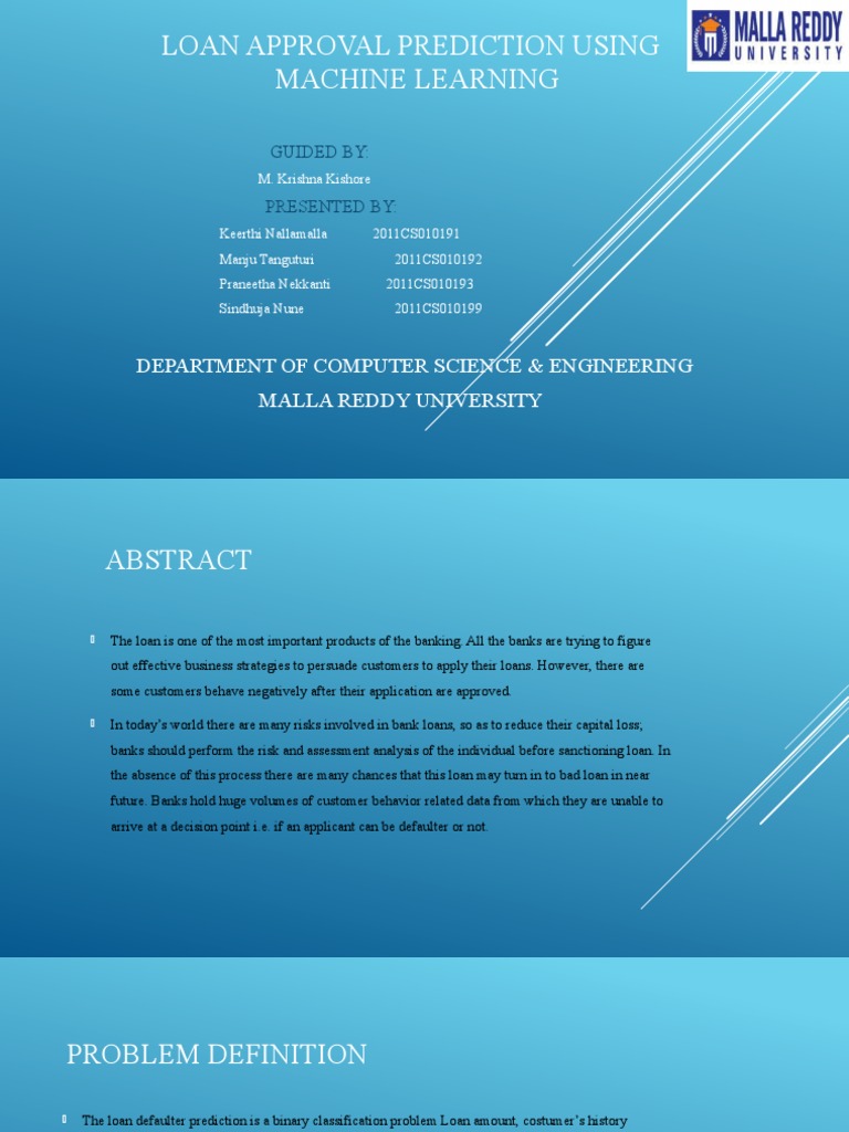 Loan Approval Prediction Using MAchine Learning by Ashritha Peddi on Prezi