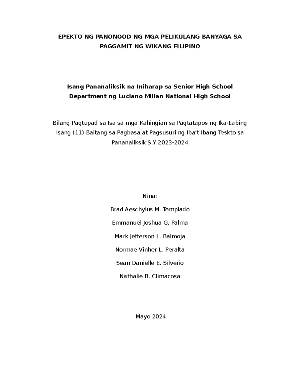 Research Ang Mga Epekto Ng Paggamit Ng Salitang Balbal Sa Pag Aaral Ng ...
