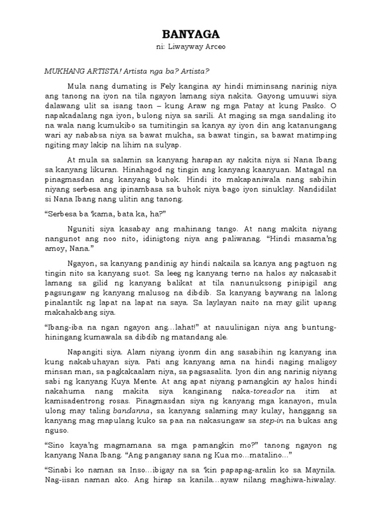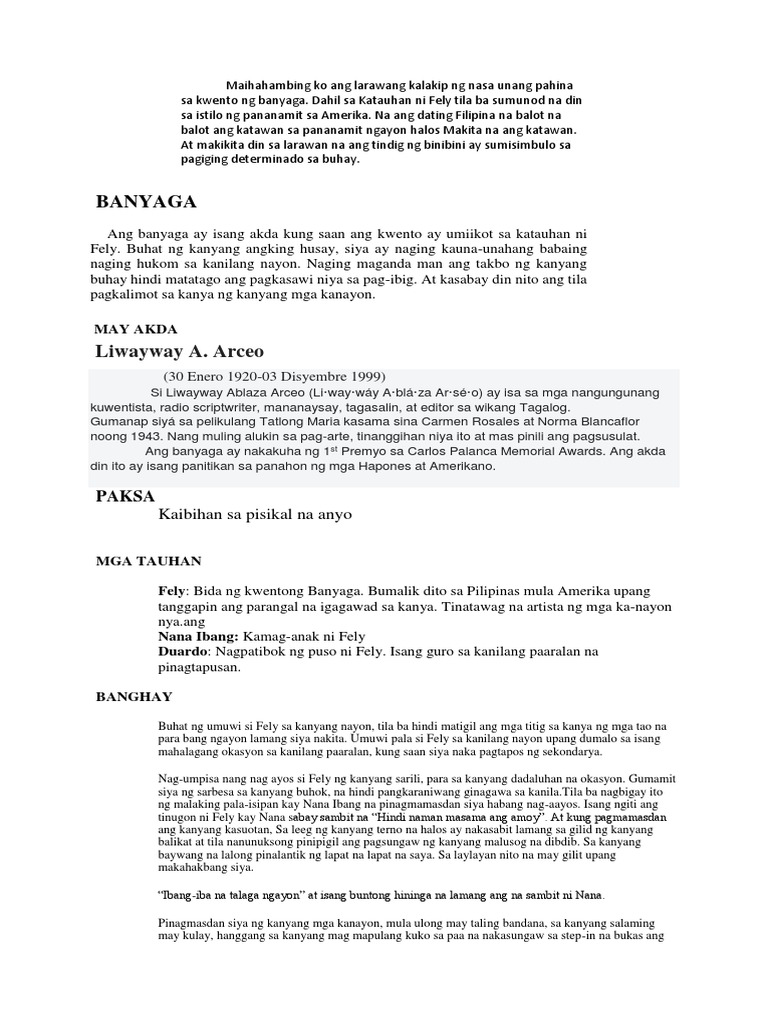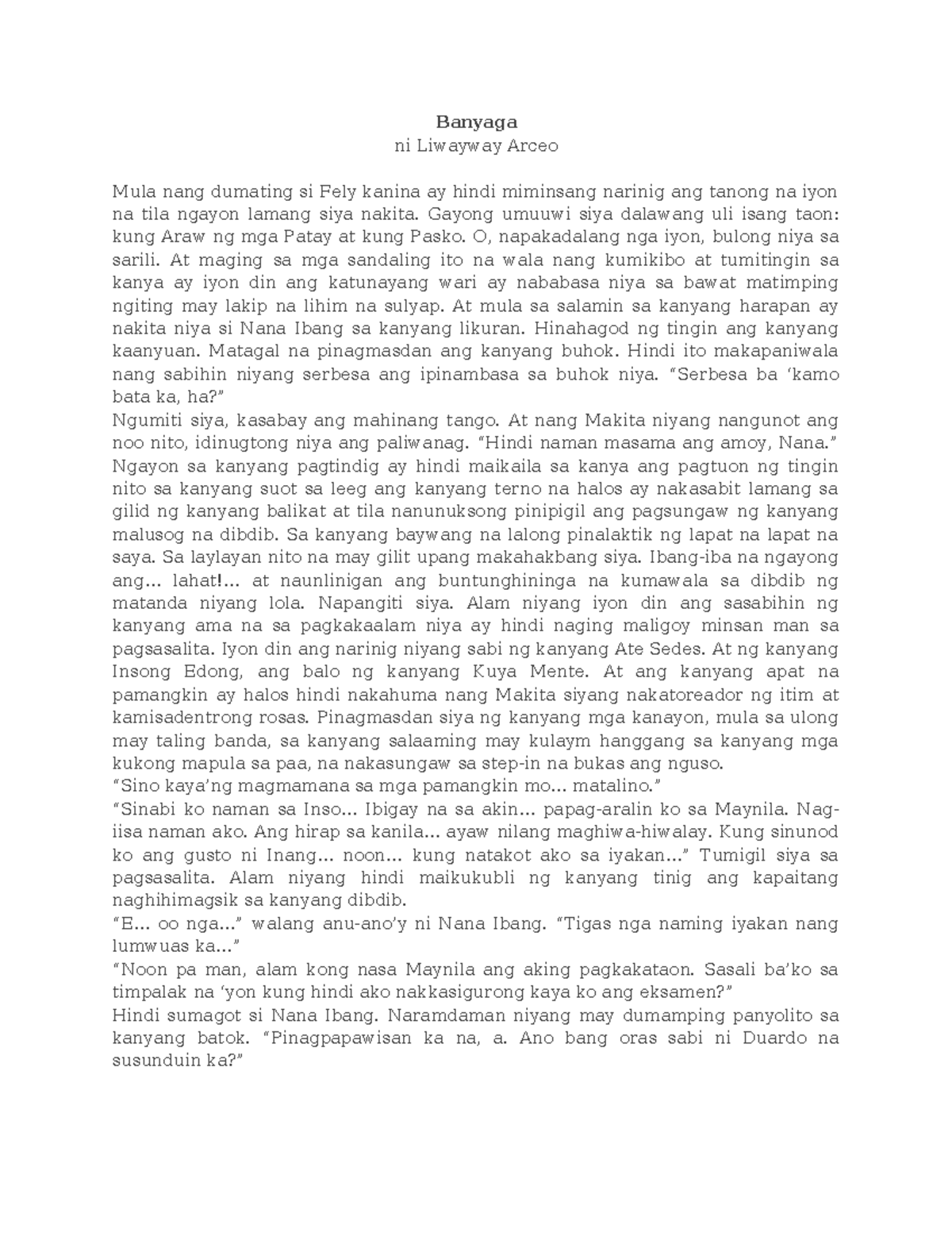 Pagsusuri sa Maikling Kuwentong Banyaga ni Liwayway Arceo (BSED ...