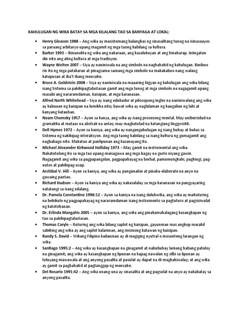 Kahulugan NG Wika Batay Sa Mga Kilalang Tao Sa Banyaga at Lokal | PDF