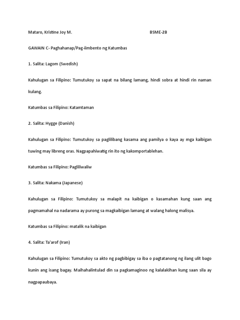 Mga Salitang Banyaga Na Walang Direktang Kahulugan Sa Ingles | PDF