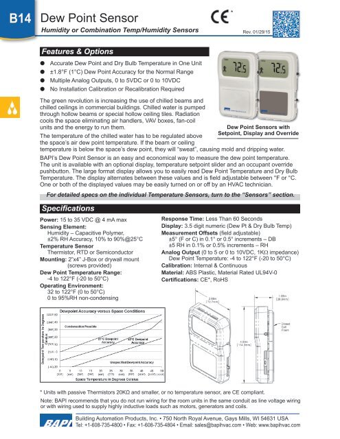 BAPI - Sensor Products for HVAC/R Duct and Room