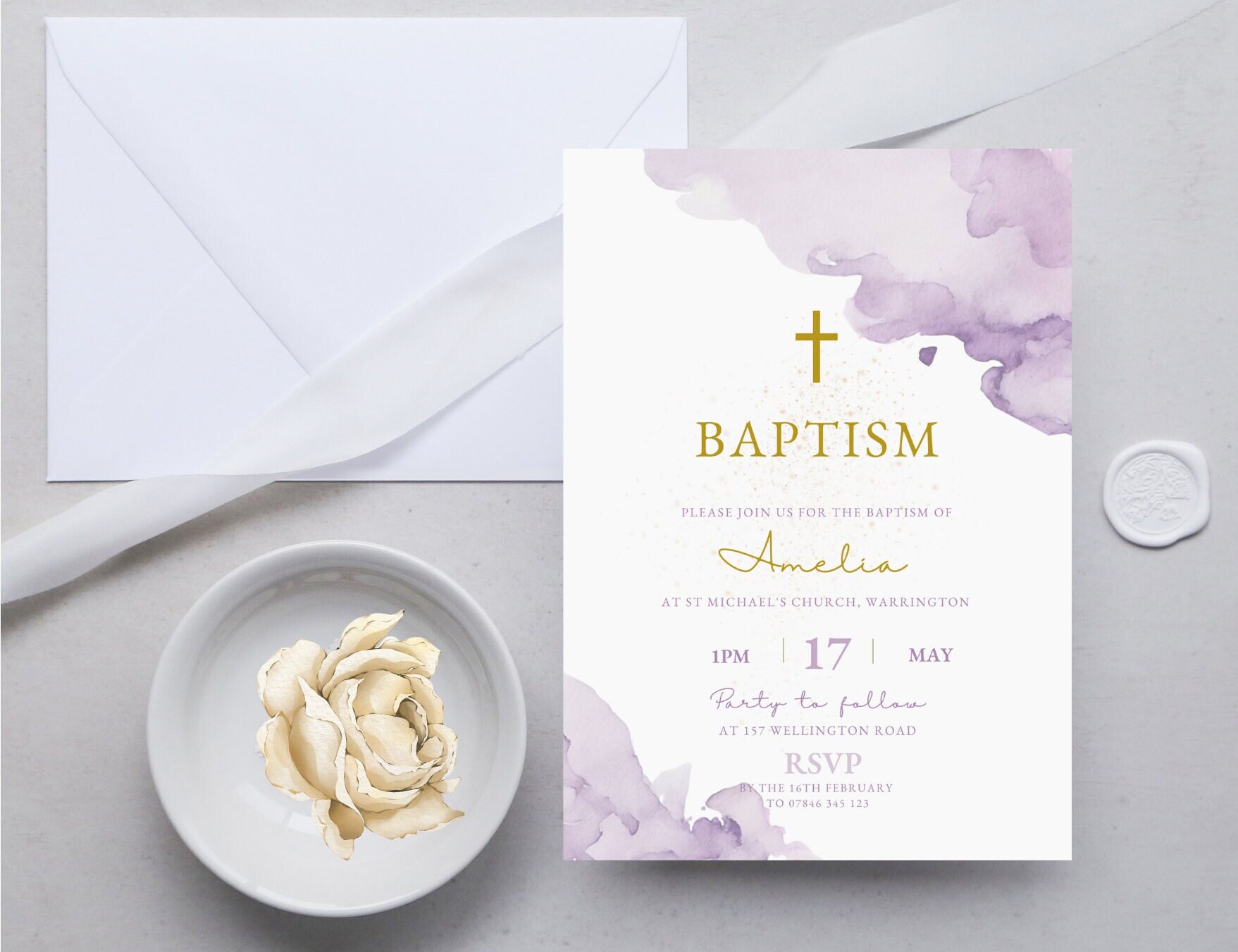 Minimalist Baptism Invitation Template, Purple Printable Baptism Invite ...
