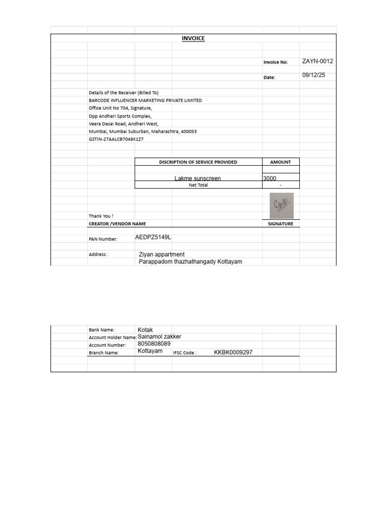 Barcode Invoice Format (1) (1).Xlsx - Sheet1 (1) | PDF