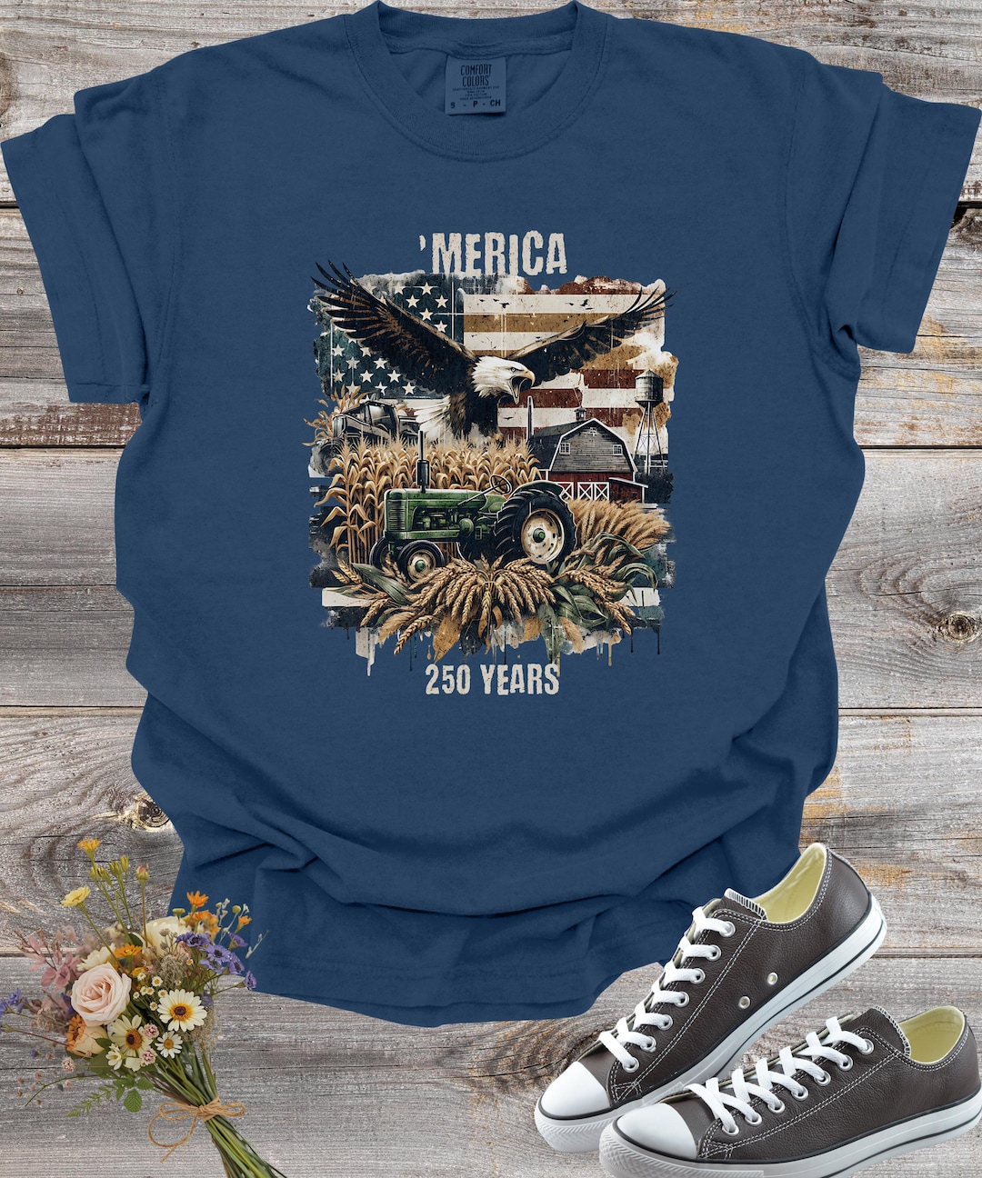 America 250th Declaration Anniversary Farm Tee, Grunge Eagle Barn ...
