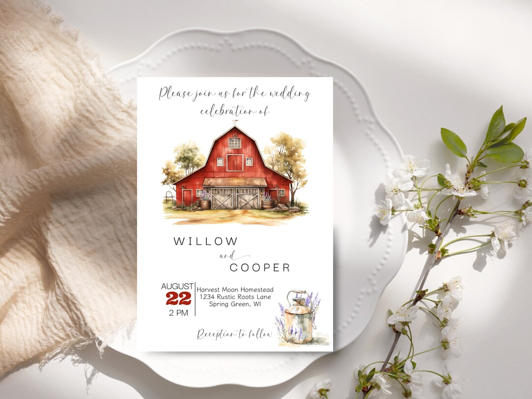 Rustic Barn Wedding Invitation, Farm Countryside Wedding Invite ...
