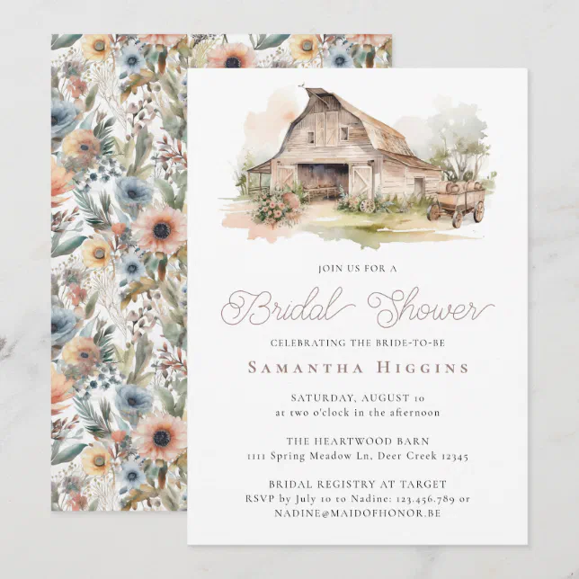 Rustic Chic Floral Farmhouse Barn Bridal Shower Invitation | Zazzle