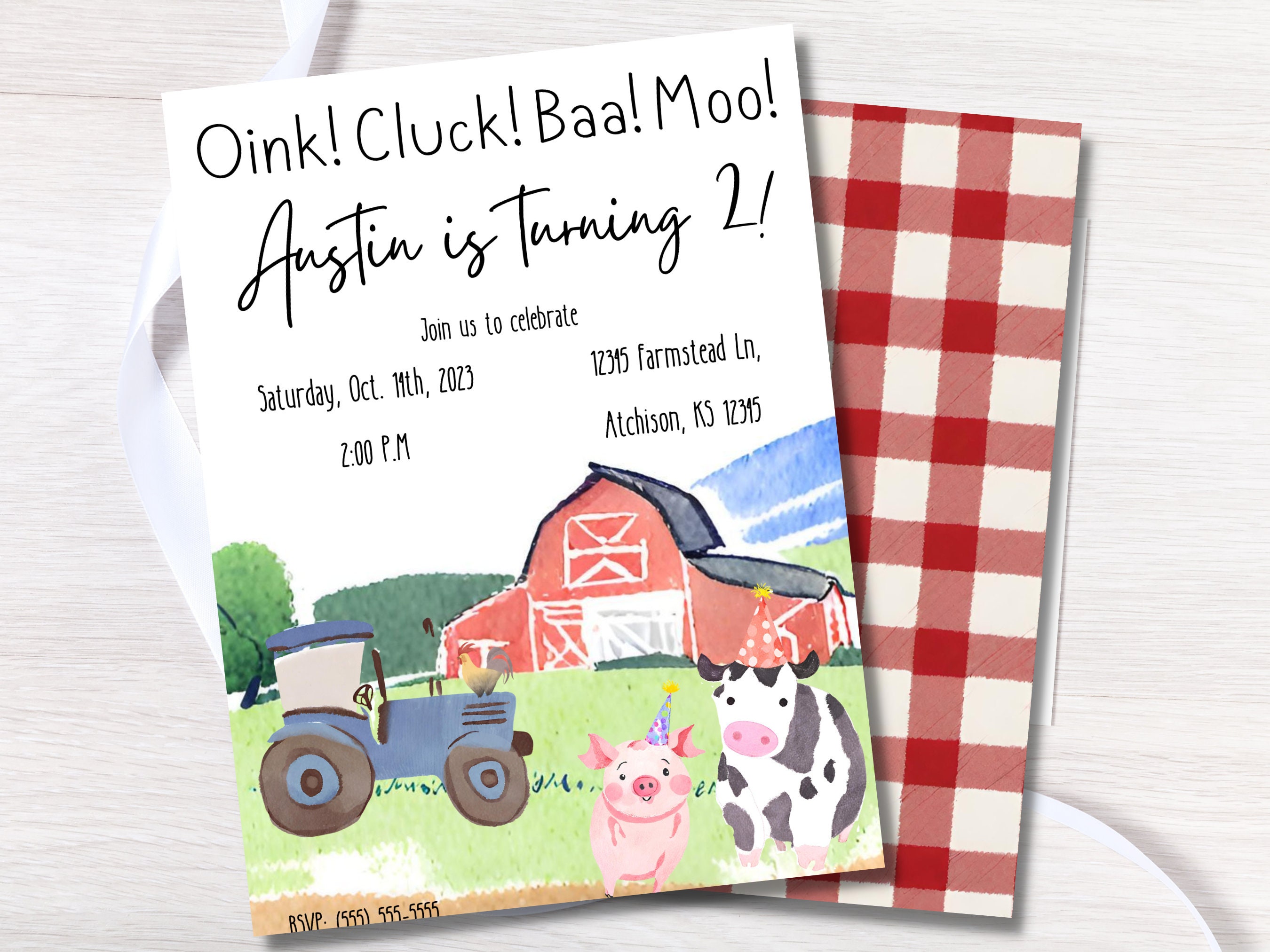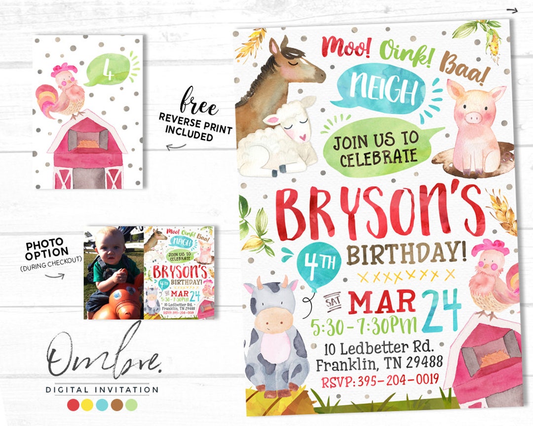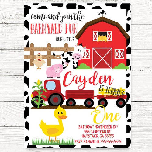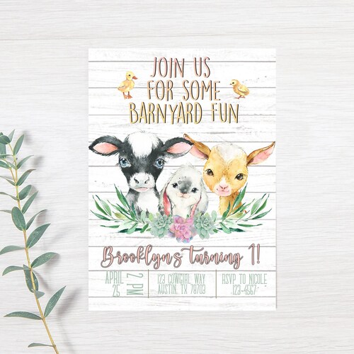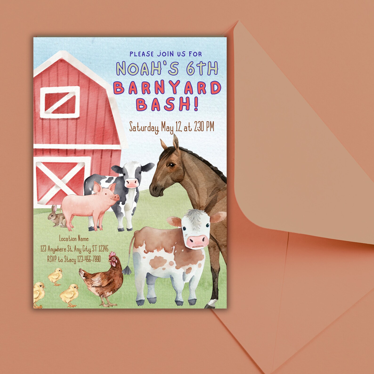 Farm Birthday Invitation Barnyard Animals Invite Barn Party - Etsy
