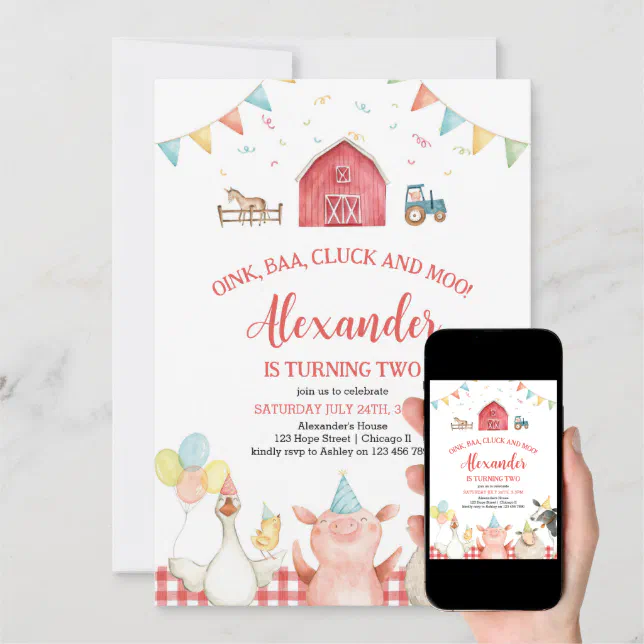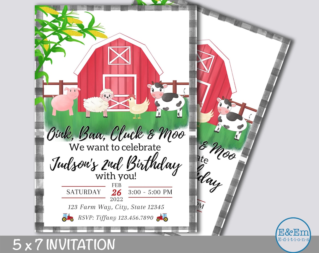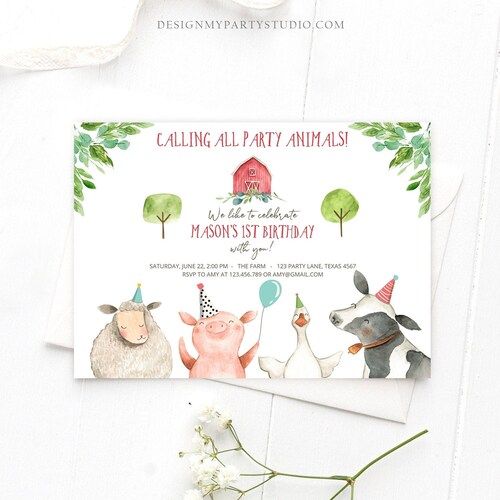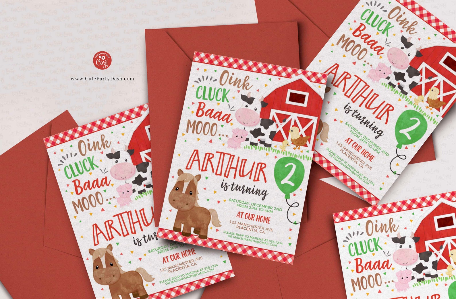 Farm Birthday Invitation Barnyard Animals Invite Barn Party - Etsy