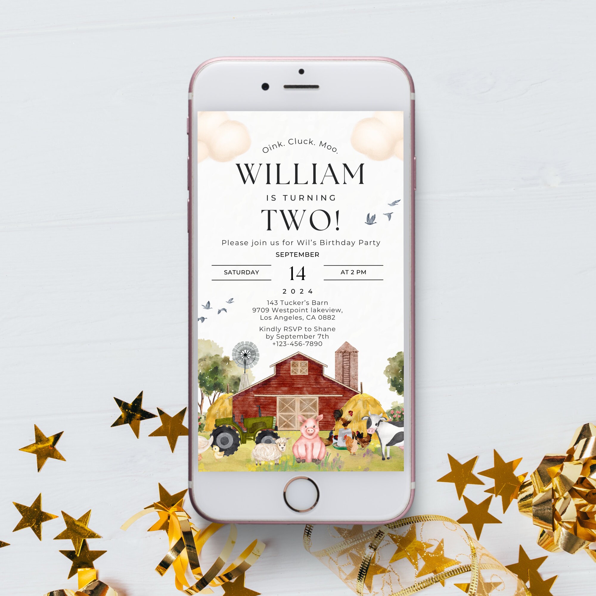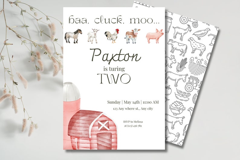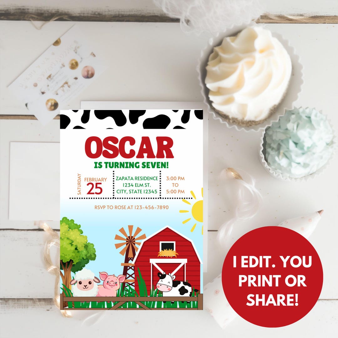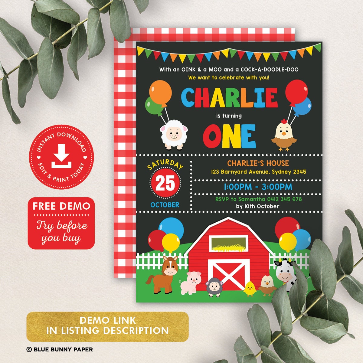 Barn Birthday Invitation, Farmer Invitation, Animals, Editable, Digital ...