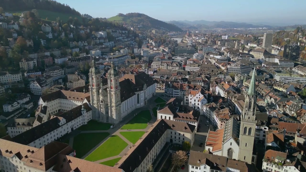 St. Gallen, Switzerland: Drone tour of twin towers and baroque beauty